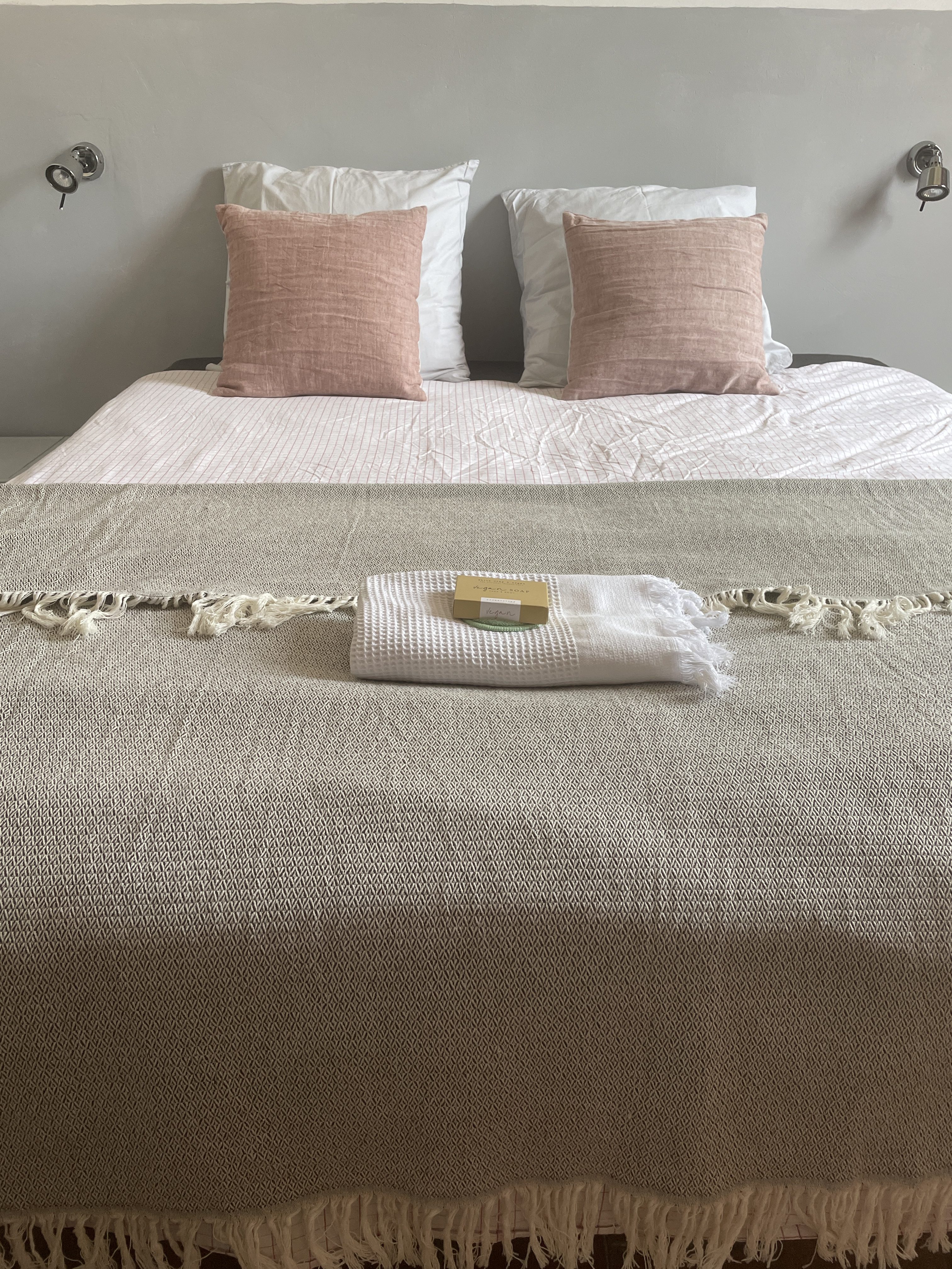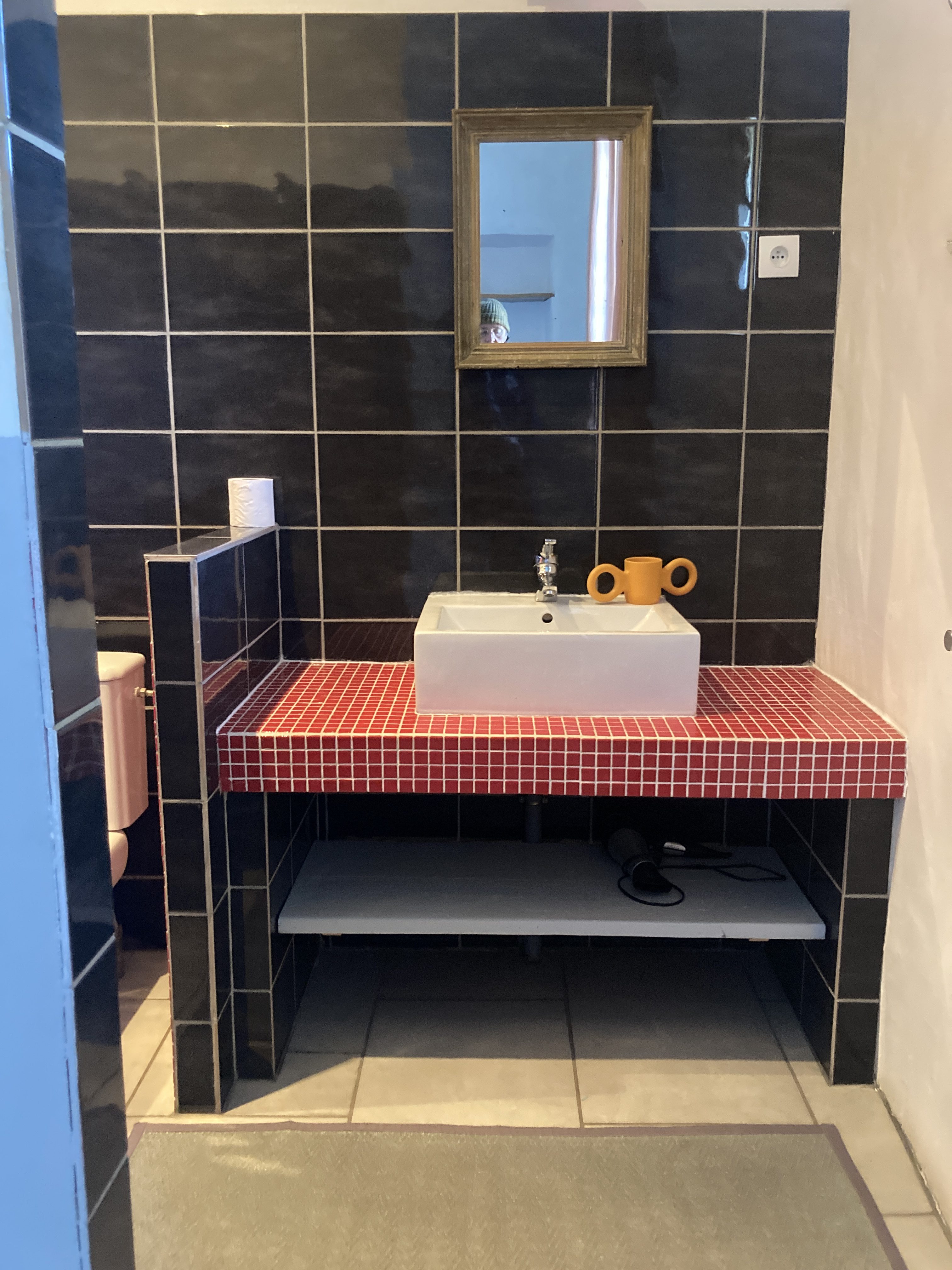 Das Appartement bietet Platz für 1-4 Personen (85 Quadratmeter ) im zweiten Stock des Hauses, auf der Dorfseite. Doppelte Exposition auf die Überreste der alten Manufaktur und auf das Dorf. Lichtdurchflutet von Mittags bis Sonnenuntergang. Dieses Appartement besteht aus einer Eingangshalle, einem Schlafzimmer mit Doppelbett (160-200) und einem privaten Bad mit Dusche, Waschbecken und WC; einem großen Wohn-/Esszimmer mit einer offenen, gut ausgestatteten Küche; einem zweiten Schlafzimmer mit zwei getrennten Betten (90 X 200) und einem zweiten Bad mit Dusche und Waschbecken sowie weiteren individuellen Toiletten.