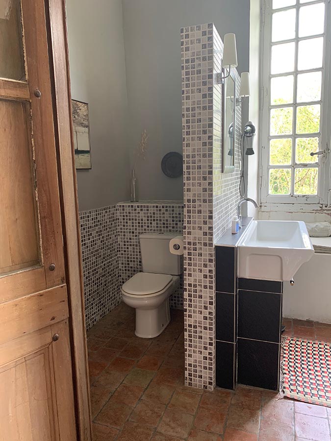 The suite has an area of 35m2 and is equipped with a large double bed (1.60 x 2.00m), a fireplace and a private bathroom with WC, shower and washbasin. It is possible to make coffee or tea in the suite.