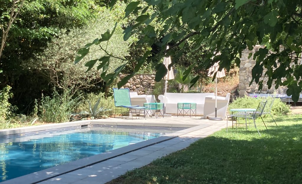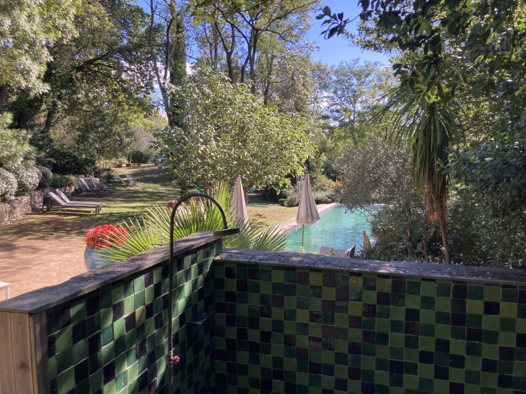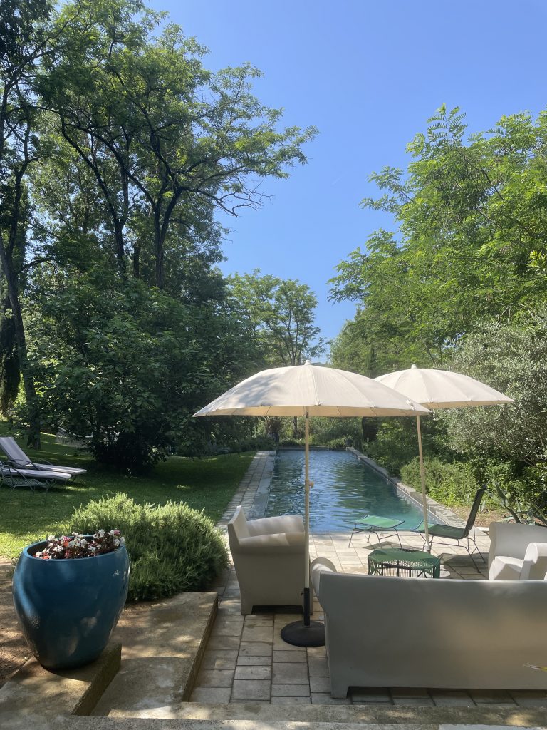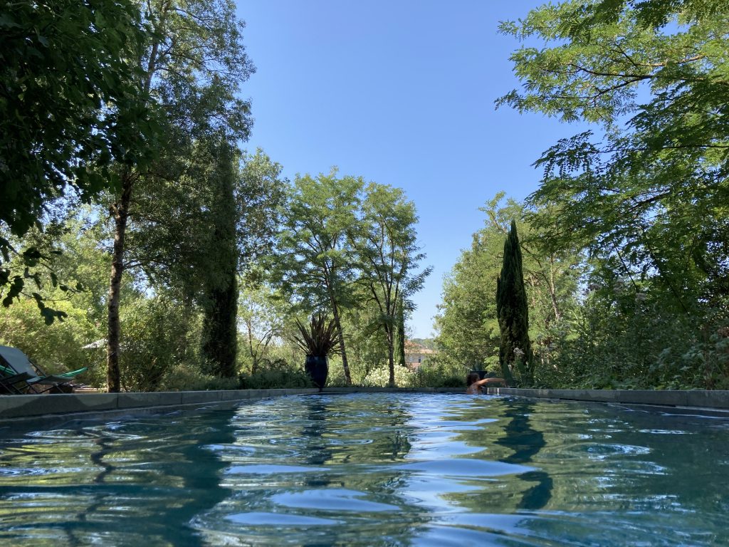 En haut du parc, avec une vue sur le bâtiment et le cours de la Dure (la rivière qui longe la Manufacture), une piscine (forme couloir de nage 16 x 3) avec un traitement naturel de l’eau (à base du sel) … vous rafraîchira.